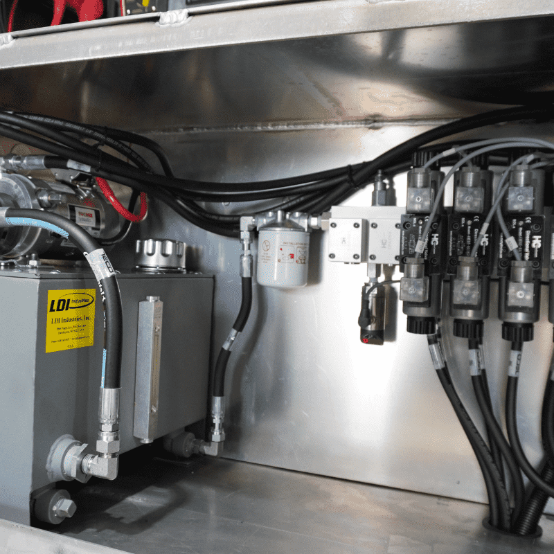 The DC power distributionmanages and oversees the electrical winches and hydraulic pump.The hydraulic reservoir, pump, and a four-station manifold are also utilized to control the hydraulic functions. A pressure transducer monitors hydraulic pressure at all times.