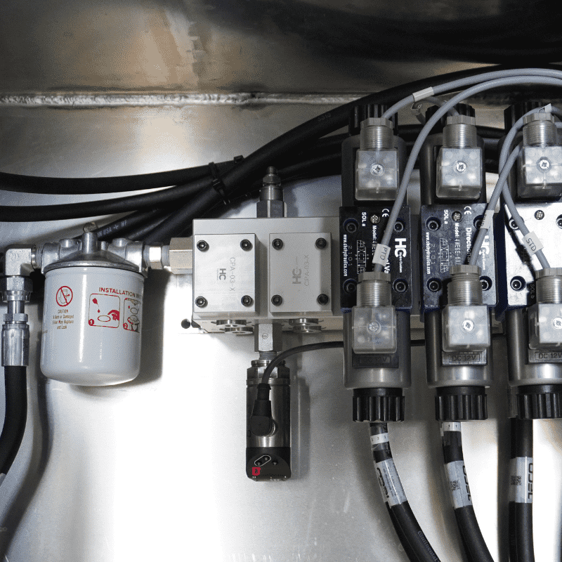 - Hydraulic Manifold: 6-station with built-in flow controls