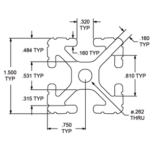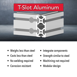 1515-LS is a 1.50” x 1.50” lite fractional 15 series square T-slot profile with four open T-slots, one on each 1.50” face. The profile is smooth, which makes it resistant to dirt and debris buildup while also being easy to clean. The 1515-LS profile is compatible with all 15 series fasteners. This profile lends itself to clean room applications, guards, enclosures, or workstations. The four open T-slots enable access from any direction and are useful for mounting accessories.