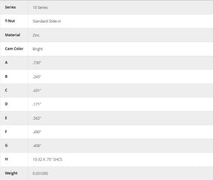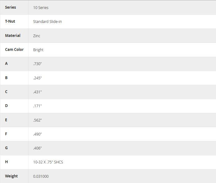 Cams are available separately (without the socket head cap screw and T-nut) for instances where you want to create your own custom assembly