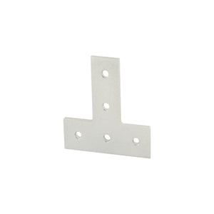 The 5 hole - "T" flat plate is a strong, external fastening method offering a long-lasting connection. This flat plate creates a 90 degree angle between connecting profiles. The fastener is flush with the profiles, allowing for a larger clearance area. It requires no machining services, is easy to assemble, and can be reconfigured and reused.
