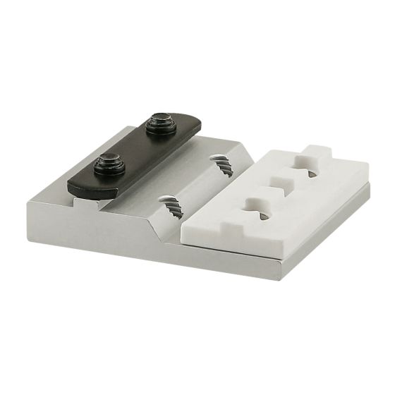 The single short UniBearing™ has an open design that enables customized layouts. It is an option that is commonly used in applications with one guiderail. The UniBearing™ is easy to quickly install or remove without taking it apart, allowing reduced retooling and downtime and increased productivity and flexibility. The pads are mounted using stainless steel flathead socket cap screws that secure it to the housing and eliminate the need for high-cycle pads. The bearing can move or be fixed; when fixed, it allows the guardrail and assembly to move. All UniBearings™ come with pre-drilled brake holes and tapped mounting holes that enable attachment of accessories to a flat surface.
