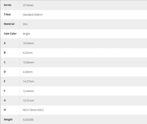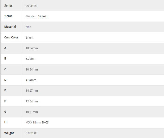 Additional Information: Cams are available separately (without the socket head cap screw and T-nut) for instances where you want to create your own custom assembly.