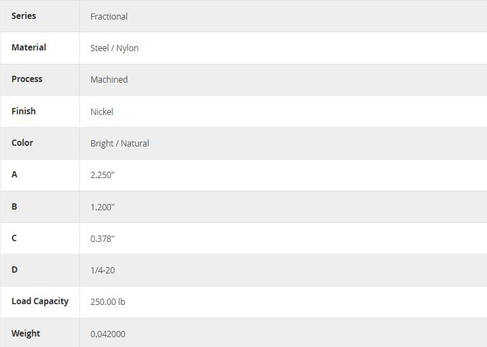 The economy floor glide is nickel-plated with a non-abrasive nylon base. It can mount directly to the T-slot profile end or to the side or end using a base plate. It is a medium-duty foot with load capacity options ranging from 250-500 pounds (113-227 kilograms). It works well on a variety of surfaces such as concrete or carpet, making it ideal for industrial, office, or home solutions.