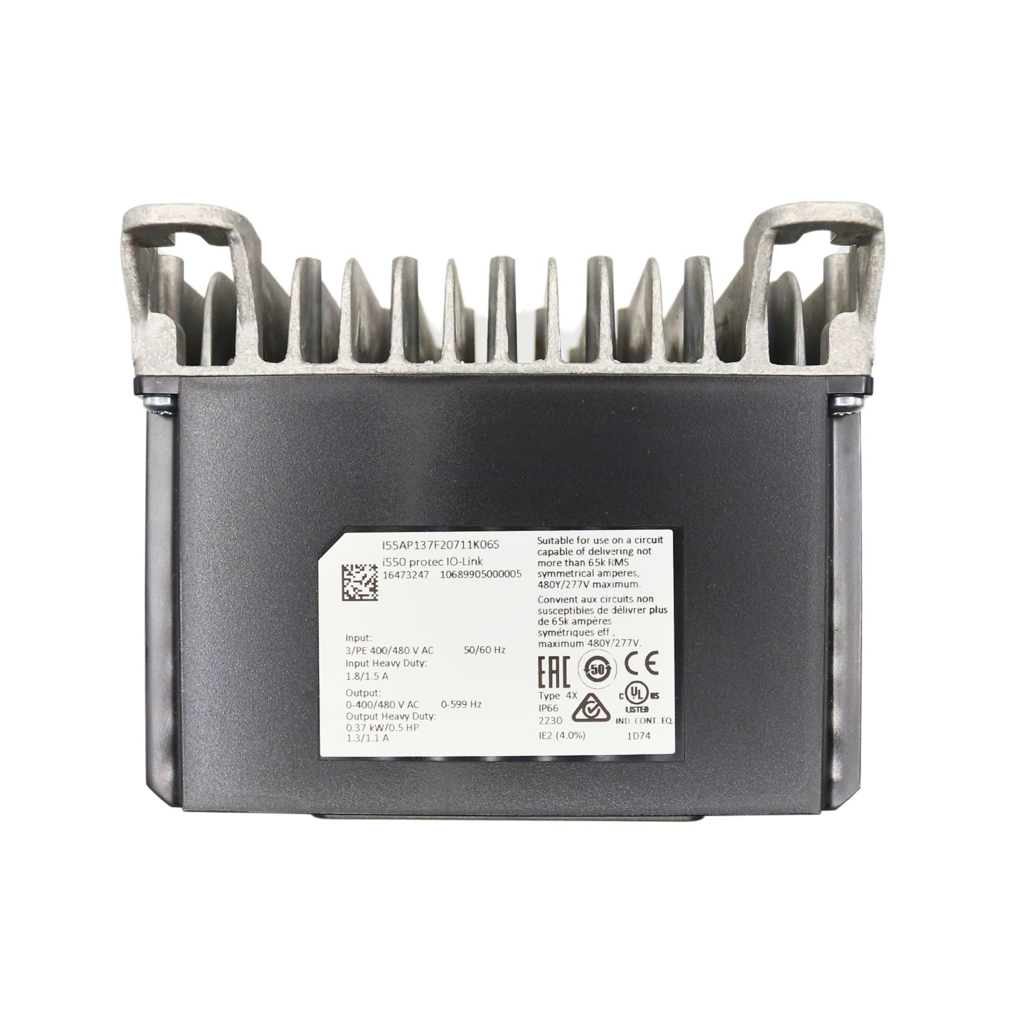 The Lenze i550 Protec I55AP137F20711K06S is a compact, decentralized 0.37 kW (0.5 HP) frequency inverter designed for harsh industrial environments. Featuring an IP66/NEMA 4X-rated enclosure, it supports direct wall mounting close to the motor for space-saving installation. Equipped with IO-Link v1.1 for advanced communication and optional Safe Torque Off (STO) for safety compliance, it offers versatile motor control including sensorless vector, V/f, and servo modes. Ideal for conveyors, hoists, pumps, and packaging machines, this inverter delivers reliable, energy-efficient performance with flexible commissioning via USB, keypad, or WLAN.