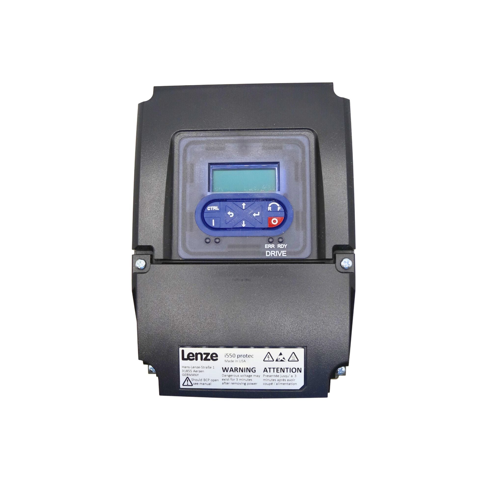 The Lenze i550 Protec I55AP215F00711K00S is a compact and robust 2 HP (1.5 kW) decentralized frequency inverter designed for demanding industrial environments. Featuring NEMA 4X / IP66 protection, it is suitable for wall or motor-mounted installations in harsh conditions. The inverter offers advanced sensorless vector and energy-saving VFC-Eco motor control modes, an integrated LCD keypad for local operation and diagnostics, and supports multiple communication protocols including CANopen and Modbus. It complies with the Ecodesign Directive EN 50598-2, ensuring energy-efficient and reliable motor control for applications such as conveyors, hoists, pumps, and packaging machines.