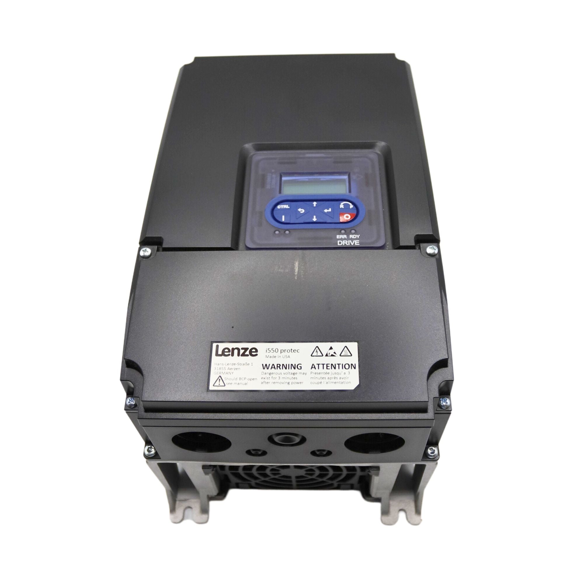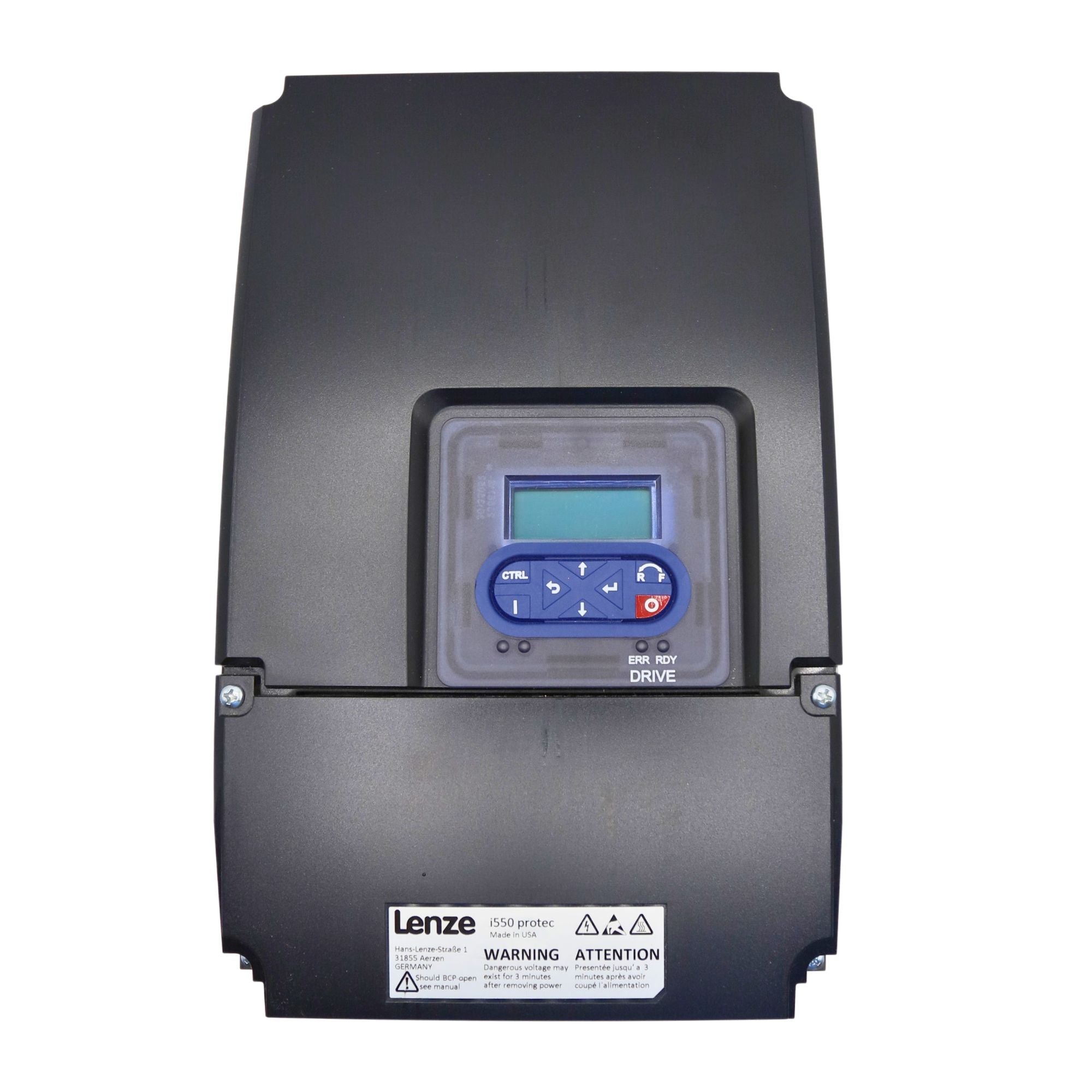 The Lenze i550 Protec I55AP311F00711K00S is a durable 15 HP (11 kW) decentralized frequency inverter designed for demanding industrial environments. Featuring NEMA 4X / IP66 protection, it is ideal for direct wall or motor-mounted installations, offering robust performance even in harsh conditions. Equipped with an integrated LCD keypad for easy local control and diagnostics, it supports advanced sensorless vector motor control. Optional Safe Torque Off (STO) functionality enhances safety compliance, while adherence to the Ecodesign Directive EN 50598-2 ensures energy-efficient operation across various applications such as conveyors, hoists, pumps, and packaging machinery.