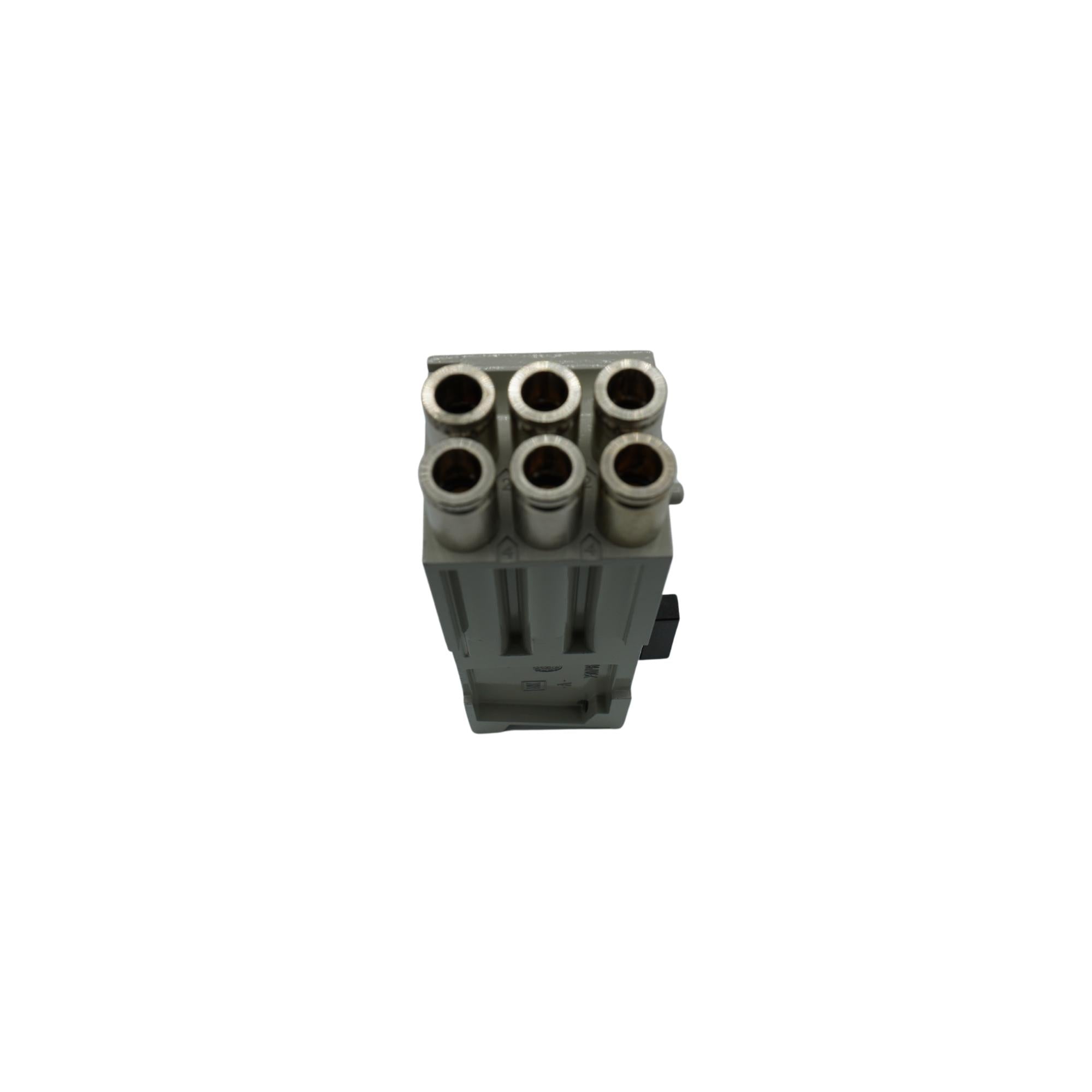 K501AMS32MA0010 is a 501 Series pneumatic manifold sub-base with 3 stations, 1/4" side ports, and plug-in receptacle for modular automation systems.